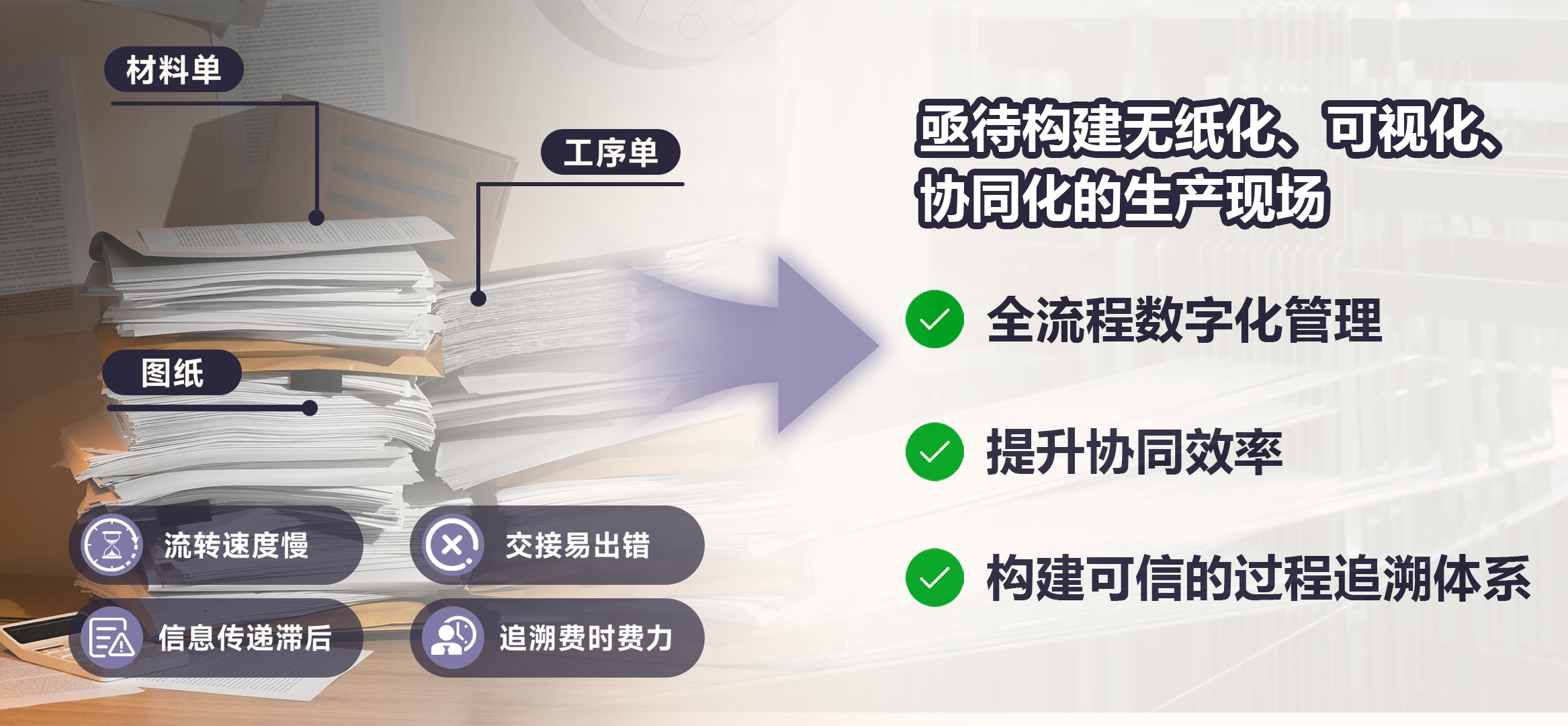 在该制造商的生产线上,复杂的业务催生了工序单、材料单、图纸等海量纸质单据。这些单据依赖人工在车间、质检部门间流转,需要现场手写标记、签章,导致信息传递速度缓慢,生产进度时常因此滞后。此外,历史单据查询也极为困难,工作人员不得不耗费大量时间在成堆的文件中手动翻找,效率低下且易错频出。