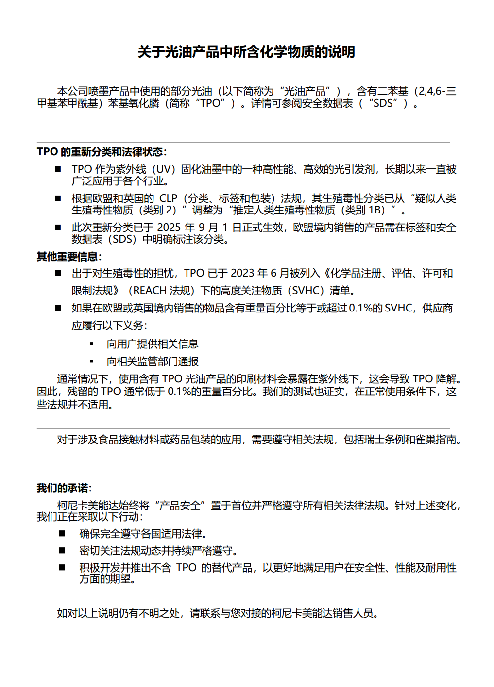 关于光油产品中所含化学物质的说明