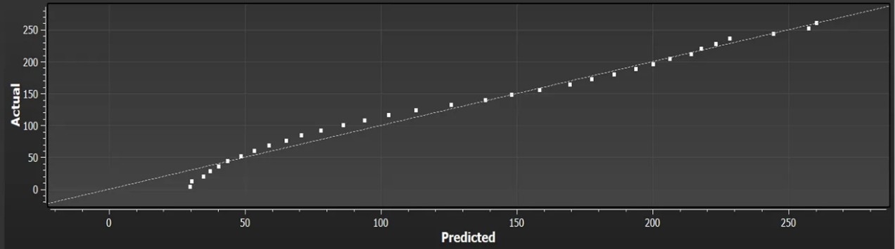 构建一个PLS回归模型以量化棉片的干燥程度。回归变量称为“干燥”,取值范围为0至264(对应干燥时间,单位为分钟)。需要注意的是在使用SpecimINSIGHT时,回归模型可以仅基于样本构建,而无需考虑背景。在训练模型时,每两张图像中的一张会被纳入考虑范围。模型的准确性是在所有其他图像上进行估算的。