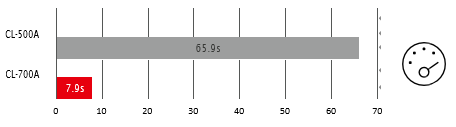 对比结果: 新分光辐射照度计CL-700A 测量速度比 CL-500A快了约8倍。 |