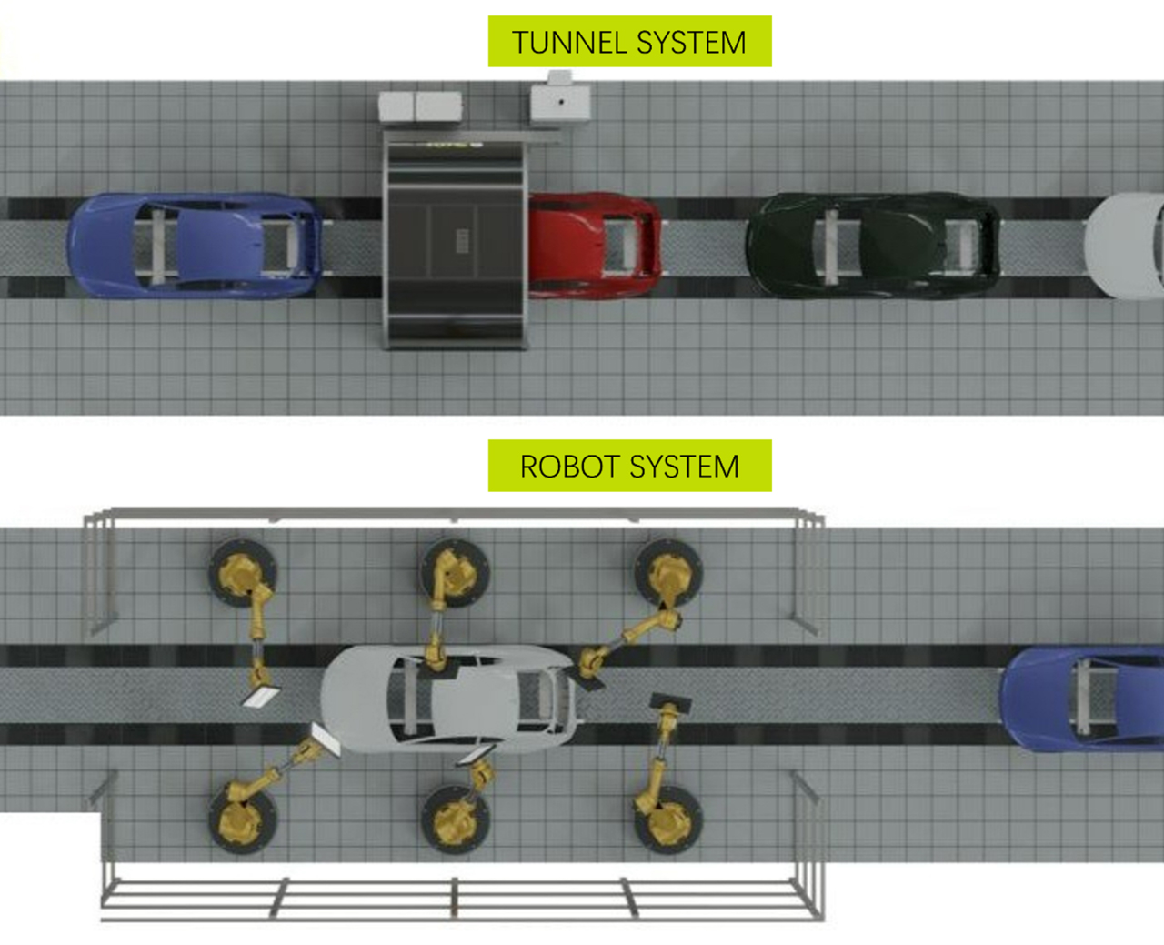 在周期时间方面,隧道利用车辆通过传送带的移动,而机械臂至少需要3秒才能在点之间移动。但是,这两种系统都允许将生成的数据传输到后续阶段,以高效地进行调整和修复。