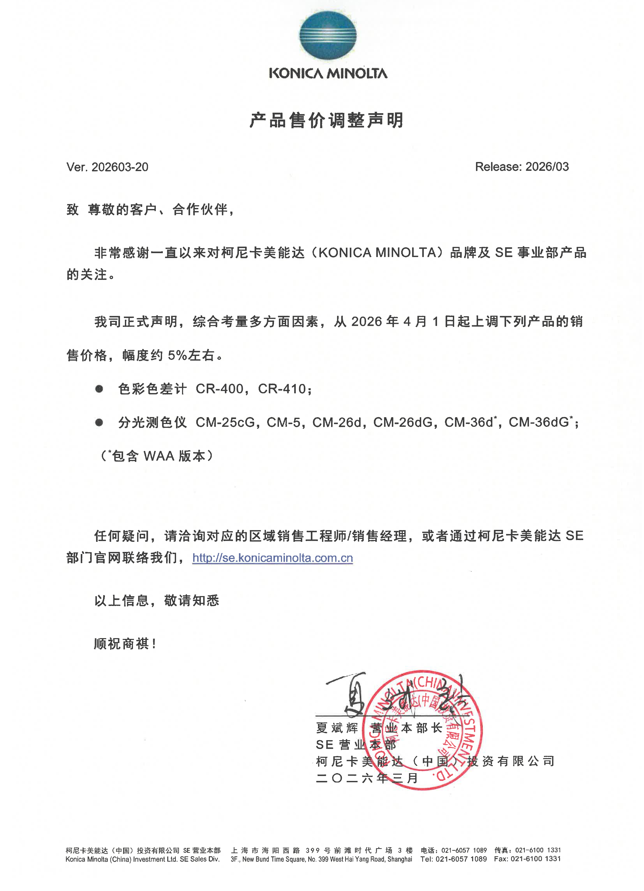 非常感谢一直以来对柯尼卡美能达(KONICA MINOLTA)品牌及SE事业部产品的关注。