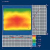 * 屏幕显示测量不均匀线条画面时的伪彩色显示(左)和增强不均匀显示(右)示例。